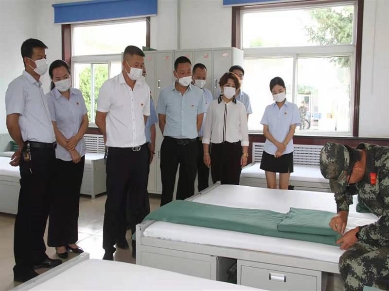 進(jìn)入軍營,在解說員的帶領(lǐng)下,首先,全體黨員參觀了軍營文化墻、綠色蔬菜基地、訓(xùn)練項(xiàng)目區(qū)的坑、樁、杠、欄,仿佛眼前每一處都曾滴下他們辛勤的汗水。其次,我們?nèi)w黨員列隊(duì),觀看了他們的軍事格斗技能展演,指導(dǎo)員一聲令下,擒拿格斗、制敵方式所有動(dòng)作嫻熟自如,他們頑強(qiáng)拼搏的精神讓我們每一個(gè)在場(chǎng)的人都為之動(dòng)容。堅(jiān)信只要他們?cè)?,人民就是安全的,他們是黨和人民的驕傲。接著,解說員帶領(lǐng)大家來到生活區(qū),參觀了他們的內(nèi)務(wù)整理,所有物品擺放一致,整齊劃一,床上的被子,就是所謂的“豆腐塊”,堪稱一道亮麗的風(fēng)景線。隨后,又參觀了部隊(duì)的榮譽(yù)室,它是這支部隊(duì)記錄榮譽(yù)、傳承軍魂的精神殿堂,學(xué)習(xí)傳統(tǒng)、塑造軍魂、牢記使命,墻上懸掛的每一副圖片、柜子上陳列的每一件物品,讓全體參觀人員感慨萬千,對(duì)他們的無私奉獻(xiàn)表示崇高的敬意。